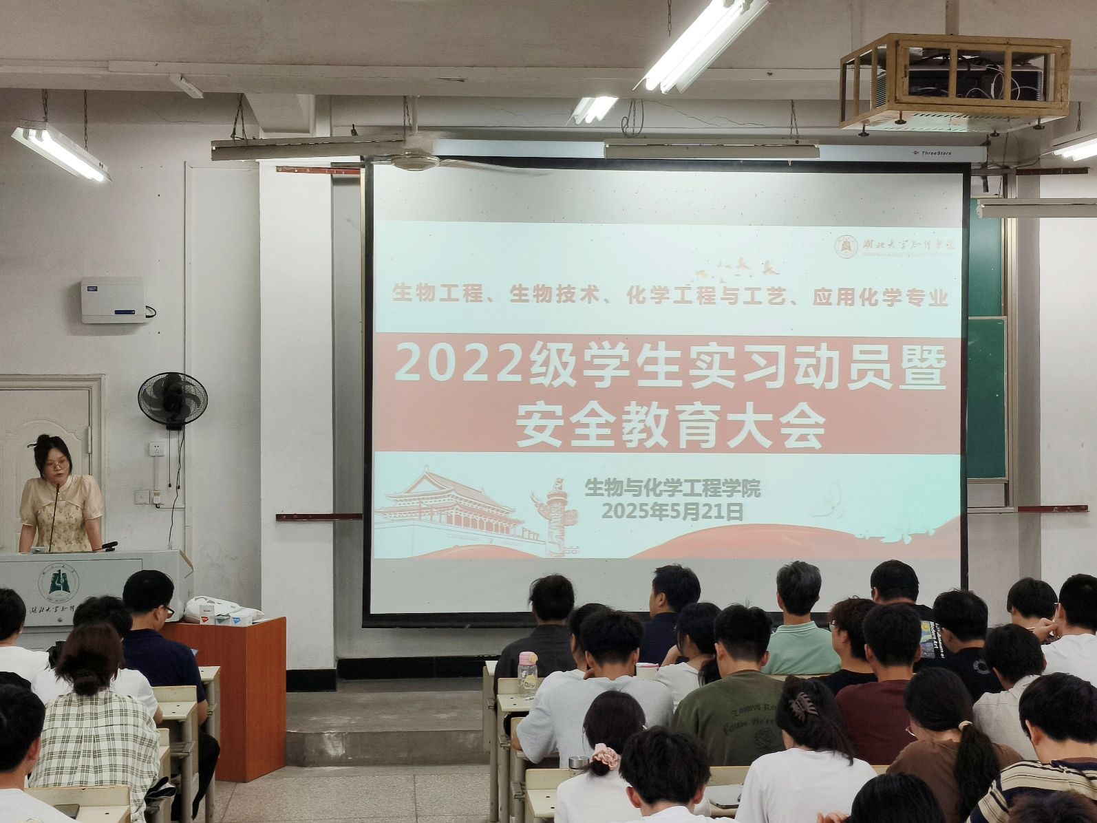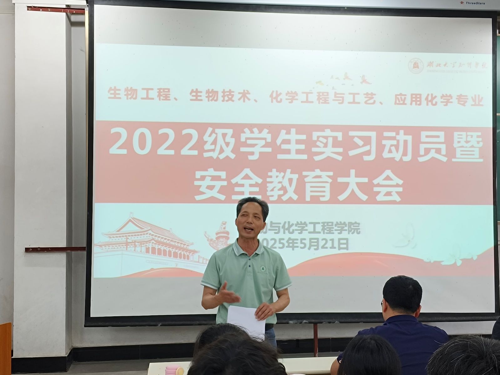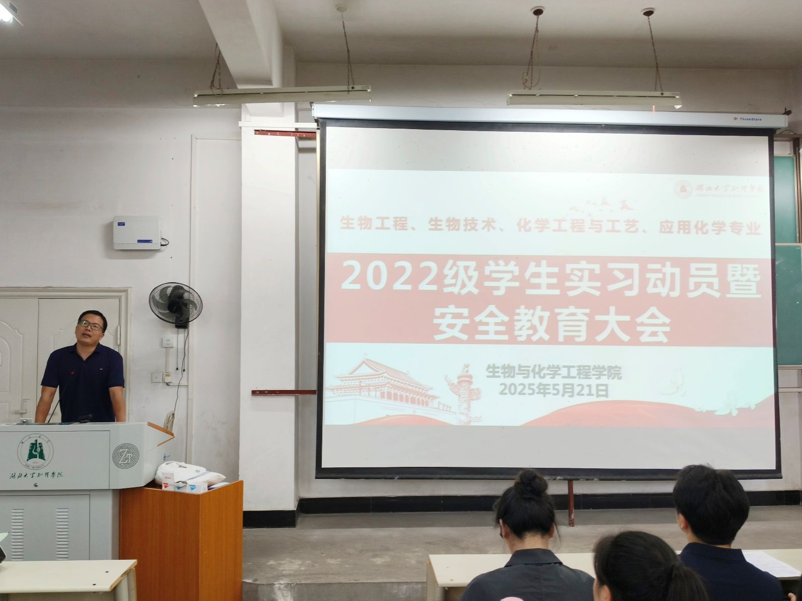 2025年5月21日,生化学院在四教108召开了2022级学生实习动员暨安全教育大会。学院院长盛希群、党总支书记孙高飞、副书记邬学勤、副院长钟星等领导班子成员及全体教师和2022级全体学生参会。本次大会由学院副院长钟星主持。