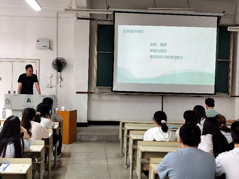 2025年5月23日下午,广州金圻睿生物科技有限公司技术体系介绍会在生化学院四教208顺利举行。本次会议由生物教研室主任檀星主持,广州金圻睿生物科技有限公司营销总监谢志海先生、人事总监邓情缘女士作为主讲嘉宾出席。生化学院院长盛希群、副院长钟星及2022级学生共同参加了此次会议。
