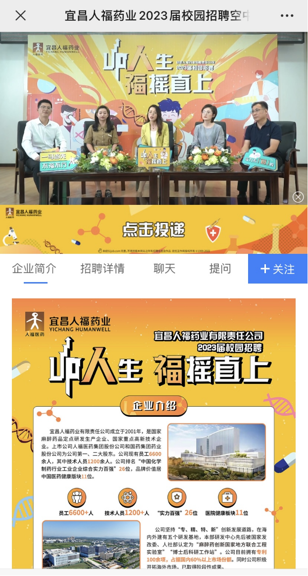 宜昌人福药业应邀进行校园招聘空中宣讲