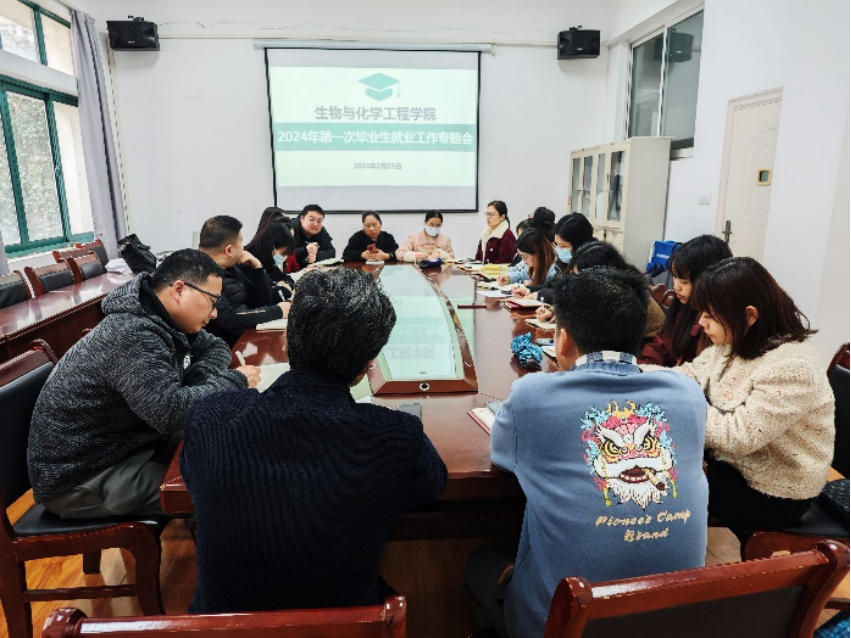 2024年2月25日,新学期开始,生化学院召开第一次就业工作专题会,学院全体教师参会。本次会议主题围绕如何进行2024年的毕业生就业工作展开。盛希群院长和刘克书记在会上对新一年的就业工作做出了安排,提出了新的要求。
