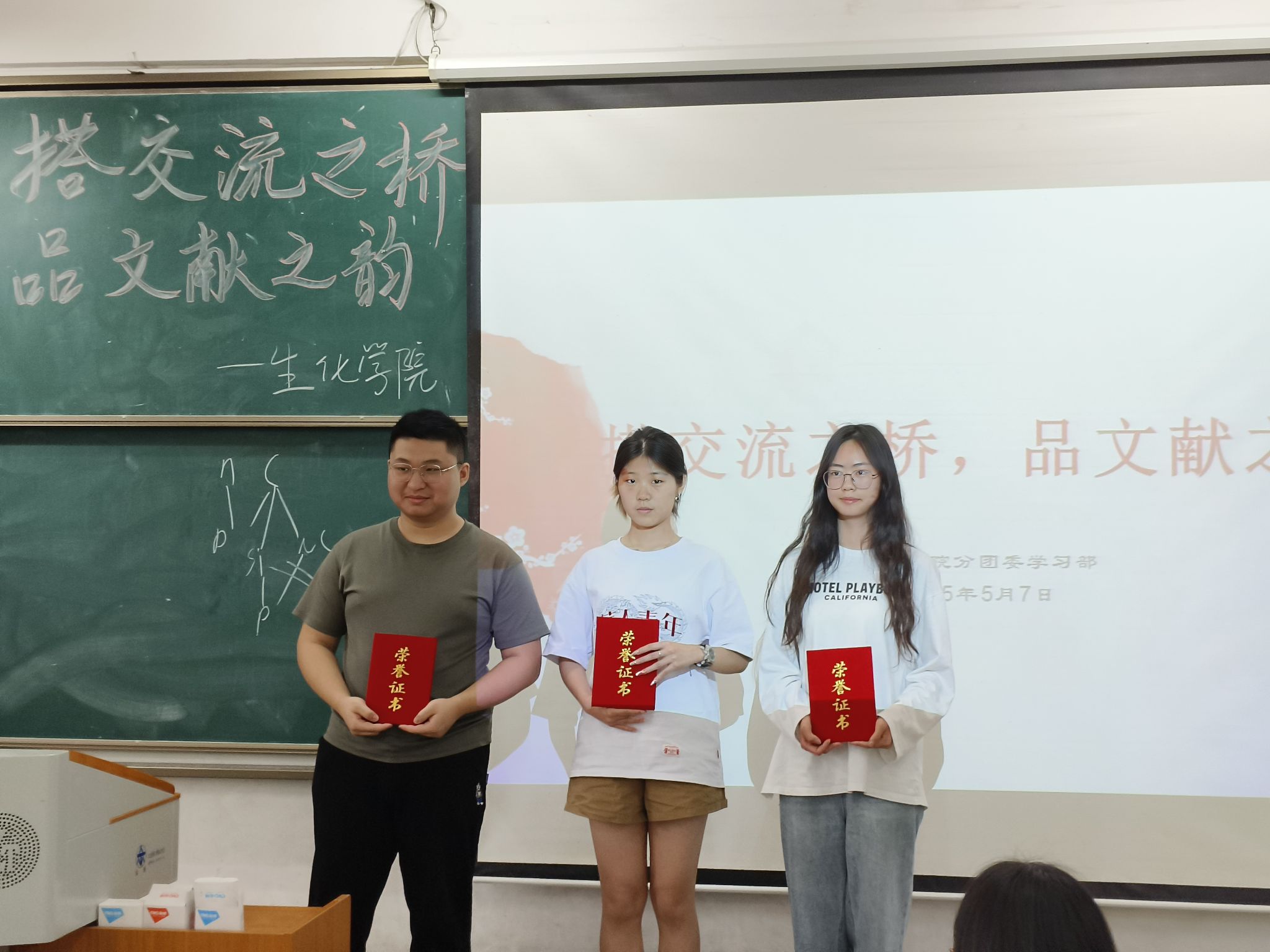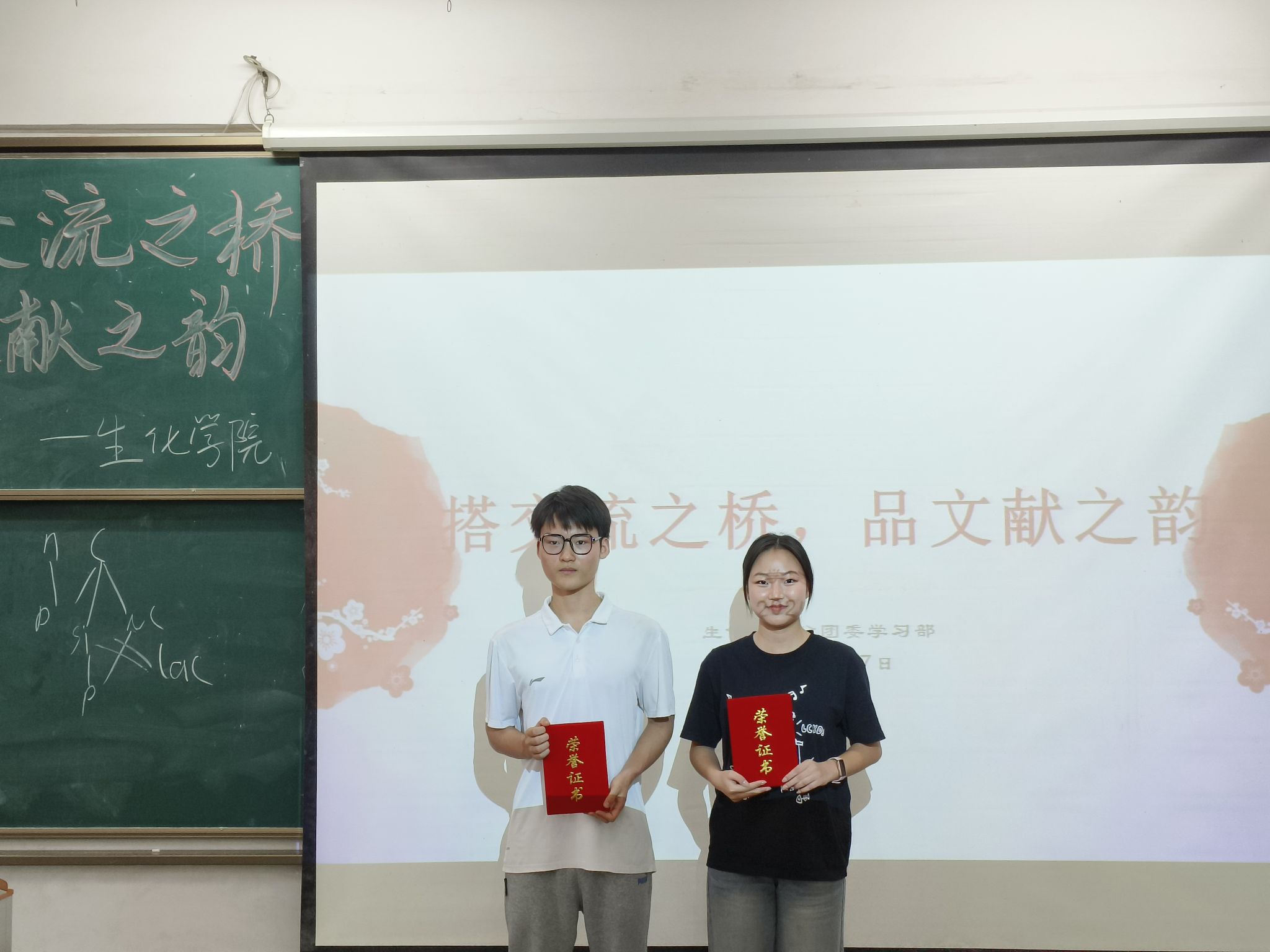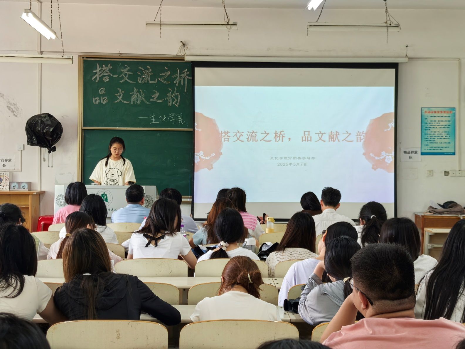 为了提升同学们的文献检索与阅读能力,增强科研素养,拓宽学术视野,激发学生对生物、化学专业的兴趣,使他们主动探索学科知识。2025年5月7日,生化学院分团委学生会学习部于第四教学楼209举办“搭交流之桥,品文献之韵”文献阅读活动。此次参加活动的评委老师有院长盛希群、副院长钟星、教研室主任檀星、刘静、吴绍艳、实验室主任李琴。
