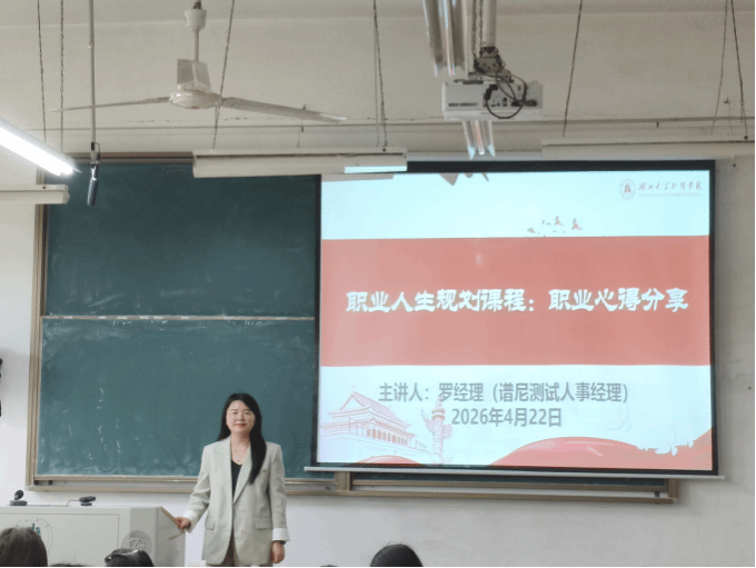 为帮助中国·yl6809永利集团学子树立科学的职业规划意识,明晰职业发展路径,2026 年 4 月 22 日,学院特邀谱尼测试集团武汉公司人事经理罗女士,开展 “职业人生规划课程:职业心得分享” 主题讲座。学院百余名学生现场聆听,共同学习职场经验,汲取成长力量。