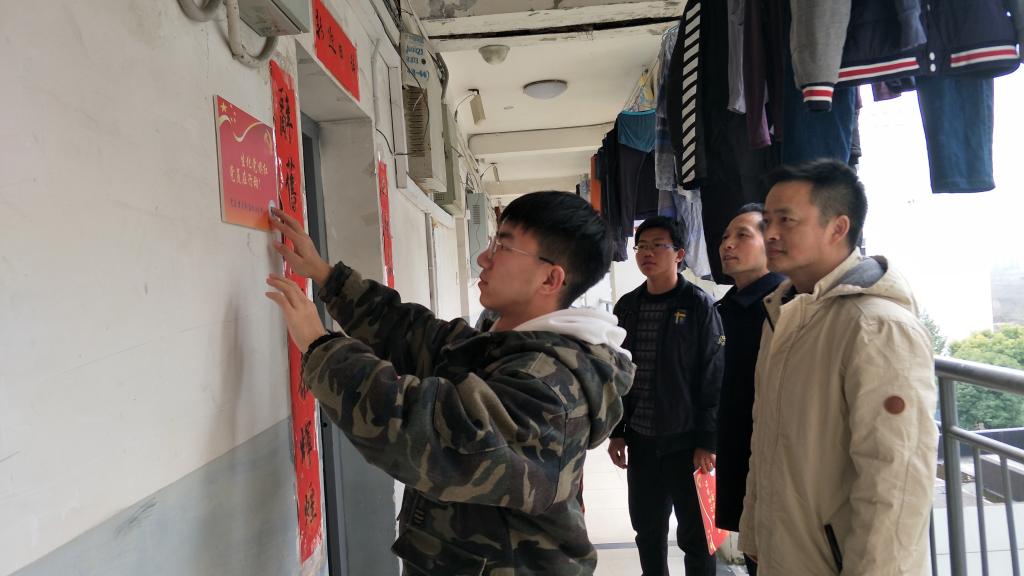 (本网讯 通讯员李天洋)为增强学生党员党性意识,明确党员责任,发挥党员先锋模范作用,2019年3月8日下午,生物与化学工程系学生党支部在学生宿舍楼开展了学生党员宿舍挂牌活动。系总支书记刘克、主任盛希群、辅导员文斯老师及全体党员参加了此次活动。