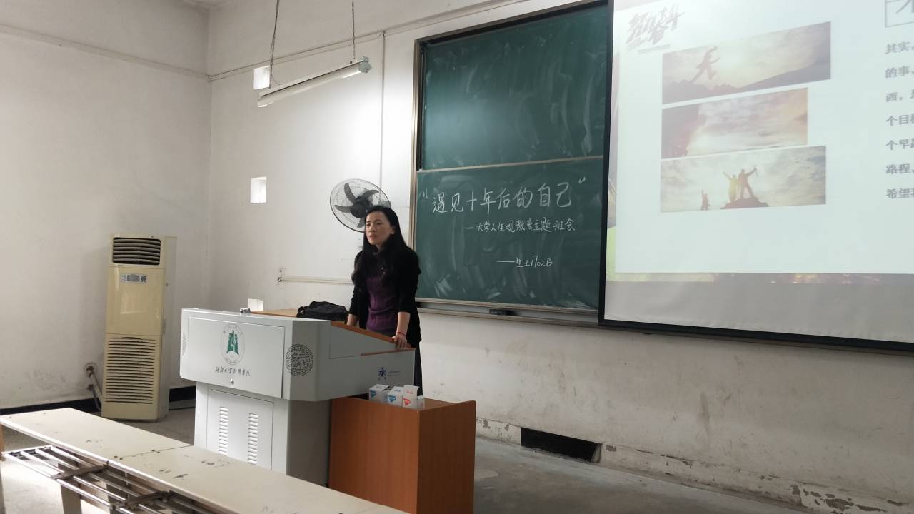 本次班会由生工1702班辅导员文斯老师主持,文斯老师以“遇见十年后的自己”为主题,以习近平总书记在党的十九大报告中指出“青年一代有理想、有本领、有担当,国家就有前途,民族就有希望”为活动背景,引导学生要以发展的眼光、未来的视角思考谋划人生,让学生明白奋斗的意义,并在“情”的方面激发学生对美好生活的向往,激发学生学习动力和潜在斗志,其形式包含情景模拟、视频展示、交流互动式。