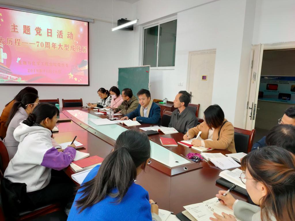 (本网讯 通讯员曹誉)11月20日中午,为进一步推进党支部建设标准化,落实“三会一课”制度,保持共产党员先进性,我院党总支以“70周年大型成就展”为内容开展了主题党日活动。