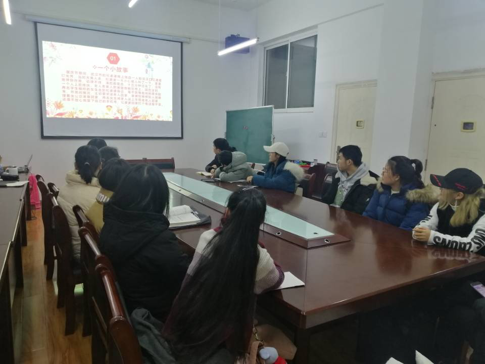 (本网讯 通讯员郑丽凡)12月25日,生化学院分团委组织部在知化楼206会议室组织召开了“让世界充满爱,弘扬青春正能量”为主题的座谈会。生化学院全体团支书及全体辅导员老师参加本次会议。座谈会围绕近期学院两名大一女生在汉口江滩扶起摔倒老人的新闻展开讨论与交流。两位女生是来自生工1902班级的夏雨璇和相雪茹,在老师的要求下,她们也参加了本次座谈会。