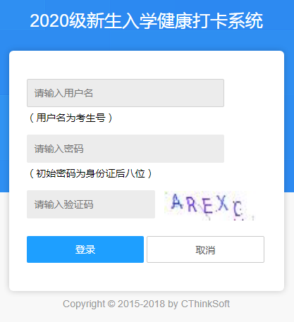 二、新生使用考生号作为用户名和身份证后八位(遇到X请大写)作为密码即可登录系统。