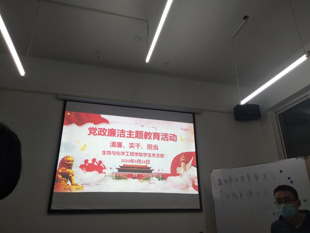 (本网讯 通讯员王玲慧 刘柳)2020年9月24日晚20点25分,中国·yl6809永利集团党总支部于知化楼206开展党政廉洁主题教育活动。本次活动出席邬学勤书记、刘柳辅导员及在校所有学生党员、预备党员(13名)。