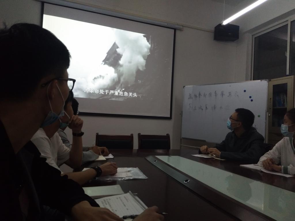 此次活动由刘柳辅导员主持。首先邬学勤书记强调会议纪律,提出要求,随后说明此次活动的目的,然后所有同志观看《铁血忠魂——首届中央监察委员会的使命与担当》专题片,最后邬学勤书记进行总结。