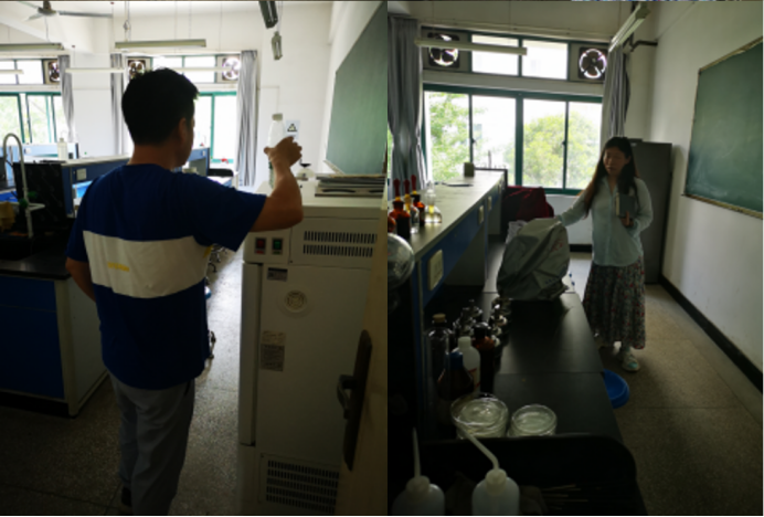 临近期末,七一将至,为了贯彻实验室安全理念,增强实验室安全意识,为建党百年营造良好氛围,6月16日中午我院盛希群院长、刘克书记、邬学勤副书记带领实验室工作人员对我院所有实验教学场所及药品房进行了安全检查,对水、电、气、药品、设备安全隐患一一排查。我院近几年专业招生人数扩大了三倍,实验室工作任务繁重,但全院教职工特别是实验室教师,始终坚守岗位,认真履职尽责,狠抓安全管理,杜绝安全隐患。盛院长在肯定实验室工作的同时,重点强调以下几点:一、要一如既往坚持做好实验室清洁卫生,设备摆放要井然有序。二、规范做法要持之以恒,如通风橱不能存放试剂,课堂用完后放回试剂柜存放等。三、做好应急预案及相关应急设备的检查和维护,如定期检查紧急喷淋和台上洗眼器,保证随时能正常使用。四、坚持实验室消毒制度,注意疫情防控。五、坚持药品分类存放,做好试剂药品领用与归还记录。全体教职工特别是各实验室负责人要充分认识实验室安全的重要性,严格执行实验室安全规章制度,定期开展自查工作,全面加强实验室安全监督管理工作,确保实验教学的顺利和安全。
