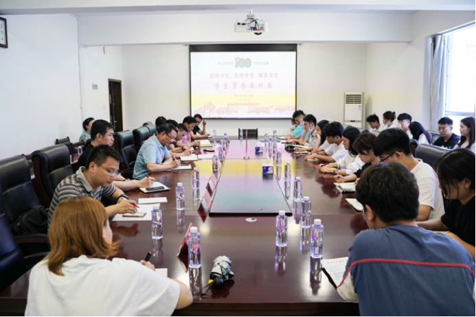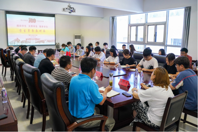 为落实党史学习教育“我为群众办实事”实践活动要求,更好服务学生成长成才。6月23日上午,学校“学生事务面对面”交流活动在知言楼三楼会议室举行。校长卜诗桢与学生面对面共话学校发展。党委副书记高志宏,副校长黄智凌,党委委员、党政办公室主任刘张虎和教务处、学工处、后勤保障处、保卫处等部门负责人参加座谈会。