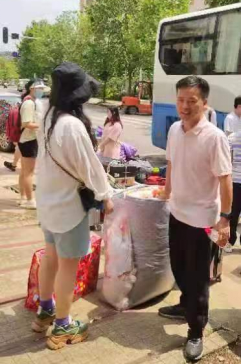 刘书记带领各位老师一起帮助实习学生搬运行李,引导学生有序登车。之后刘书记,邬副书记和王晶老师陪同实习学生前往实习单位。