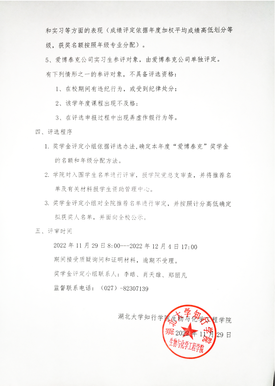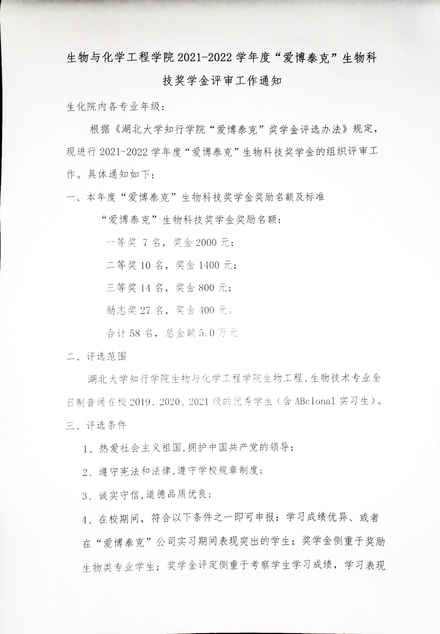 中国·yl6809永利集团关于评选2021-2022学年度“爱博泰克”生命科技奖学金的通知