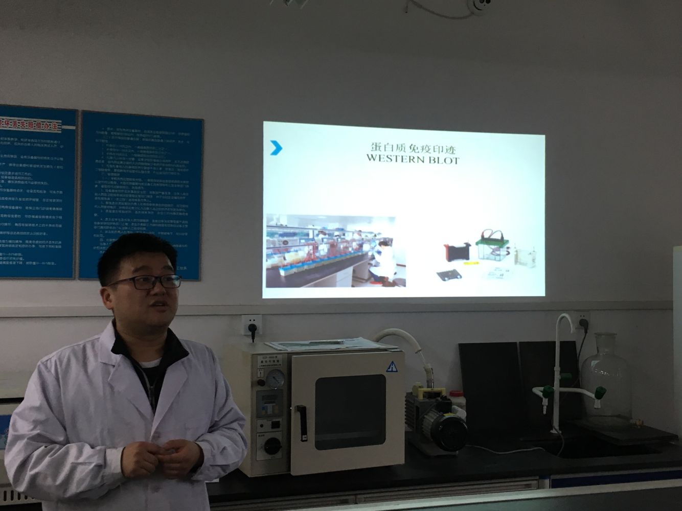 工程师们带着16级学生一起从样品处理、凝胶的制作、样品上样到电泳、转膜、一抗二抗孵育、曝光显影等步骤,逐一讲解并亲手做完整个实验。贴切的讲解与先进的技术理念开拓了学生们的视野,也让同学们更加清楚现代化生物科技企业中的生产形式,更是坚定了学生们提升自身专业能力,立志成为新时代应用型人技术才的信念。