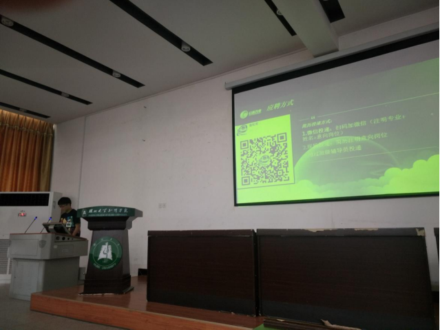 宣讲会上,公司李总和潘经理分别介绍了武汉中有药业有限公司的发展历程、公司概况、实习待遇等,分析了化学制药行业的发展趋势,并就学生感兴趣的问题进行了耐心细致的解答。去年前往公司实习并顺利就业的17级应化专业毕业生柯圣涛也一同来到了宣讲会,并现身说法,向学弟学妹们敞开心扉,分享了自己在公司实习的心得体会和满满收获。李总对我院化工应化专业毕业生在工作中吃苦耐劳,勤奋踏实,虚心求教的精神进行了肯定,并向2018级优秀学子发出了诚挚邀请。
