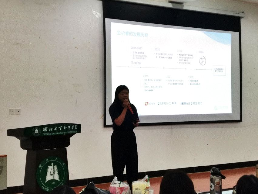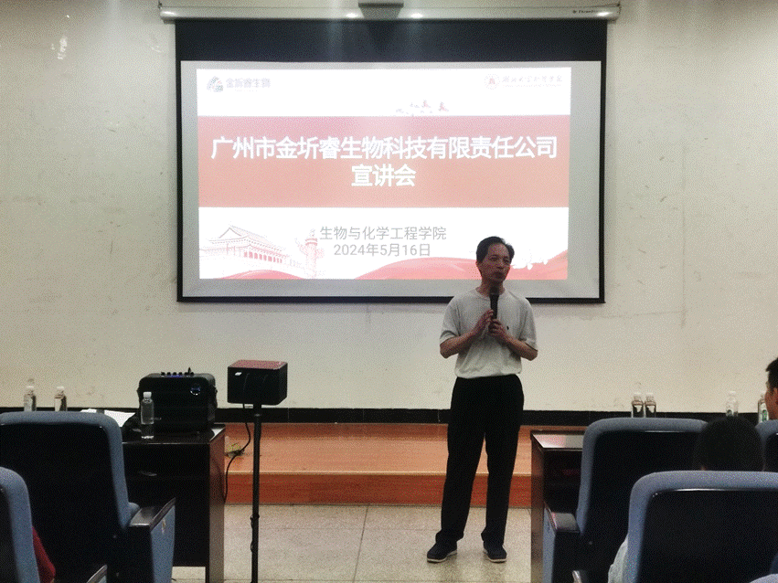 2024年5月16日下午,广东金圻睿生物技术有限责任公司人力资源部经理邓情缘女士、临床服务部技术经理刘鹏、营销总监李根石等一行来我校开展2024届实习宣讲活动。学院院长盛希群、学生工作主要负责人、生工教研室教师及2021级生物类专业全体学生参加了本次宣讲活动。