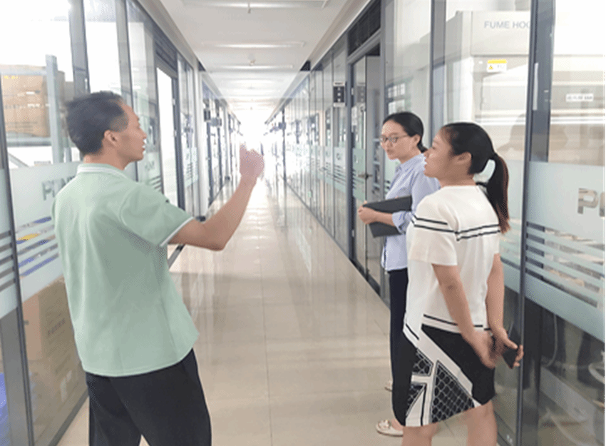 为深入贯彻落实学校“访企拓岗”文件精神,进一步为学生实习和就业搭建平台、拓宽渠道,2024年6月14日,学院院长盛希群、化工教研室主任吴绍艳、实验室主任李琴前往谱尼测试集团武汉有限公司进行调研。公司人力资源部和技术部负责人热情接待了盛希群院长一行。