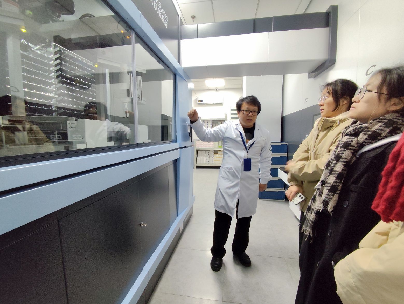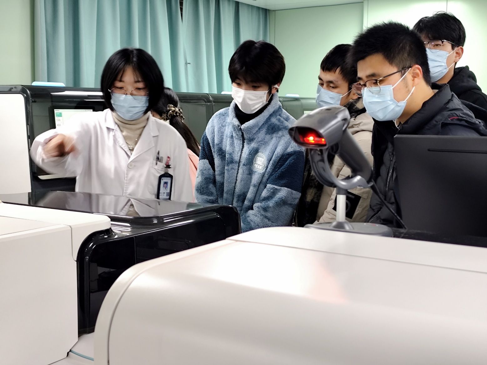师生们在医院工作人员的热情指引下,开启了一场知识与实践碰撞的探索之行。全自动化取药系统、医学检验科和病理中心等先进医疗区域一一呈现在师生眼前。全省首创的“库发一体”智慧药房取药系统,以其先进设备实现 8 10 秒极速取药,彻底改变传统取药模式;医学检验科如精密科研阵地,高端设备与标准化流程紧密配合,为临床诊断筑牢根基;病理中心借助前沿的高通量数字切片扫描仪和 AI 智能阅片系统,打造一流区域诊断中心,AI 助力医生精准分析切片,推动优质医疗资源下沉基层。学生们借此走出理论局限,深度融合知识与实践,拓展专业视野,在心中埋下医学精神的种子,为未来职业发展奠定基石。