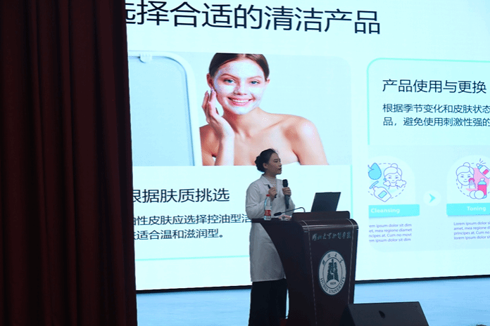 最后,胡艺医师围绕科学战“痘”展开讲座。胡医师详细介绍了痤疮(青春痘)的成因、影响以及预防方法。她指出,健康的日常饮食、充足睡眠以及保持良好心态对于预防青春痘起着关键作用。在治疗方面,胡医师特别强调科学用药的重要性,并为同学们介绍了常用的祛痘药物及方法,助力同学们掌握正确有效的祛痘技巧。