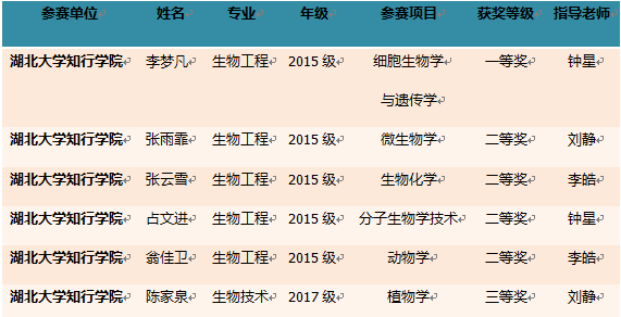 喜 报 生物与化学工程系学生在湖北省高校大学生生物实验技能竞赛中再添佳绩