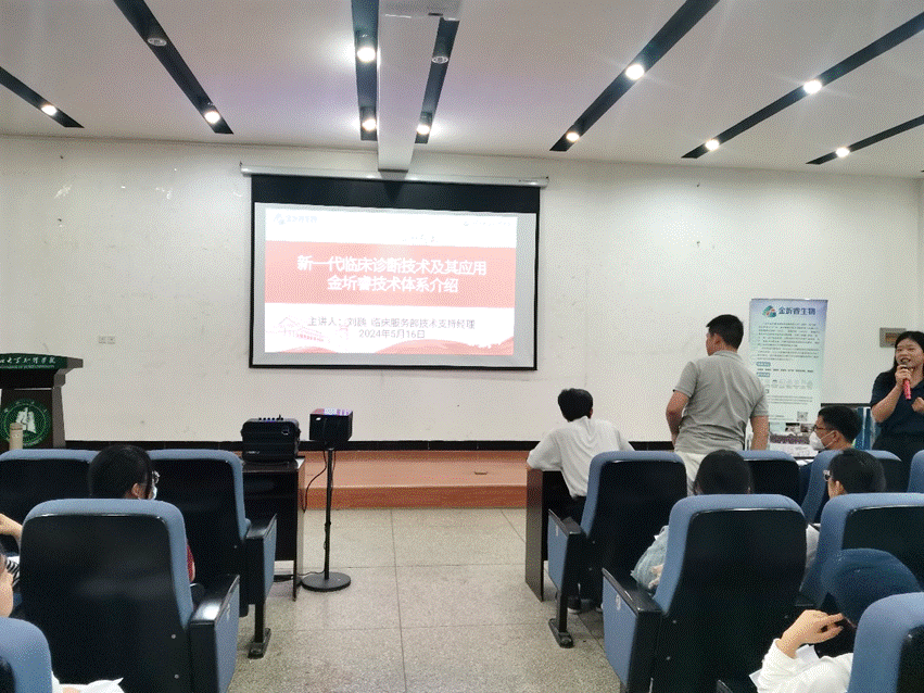 2024年5月16日下午,在广东金圻睿生物技术有限责任公司宣讲会上,公司技术支持经理刘鹏围绕新一代临床诊断技术及其应用,带来了一场生动的技术分享互动。现场,学院院长盛希群、生工教研室教师及2021级生物类专业全体学生参加了本次技术讲座活动。