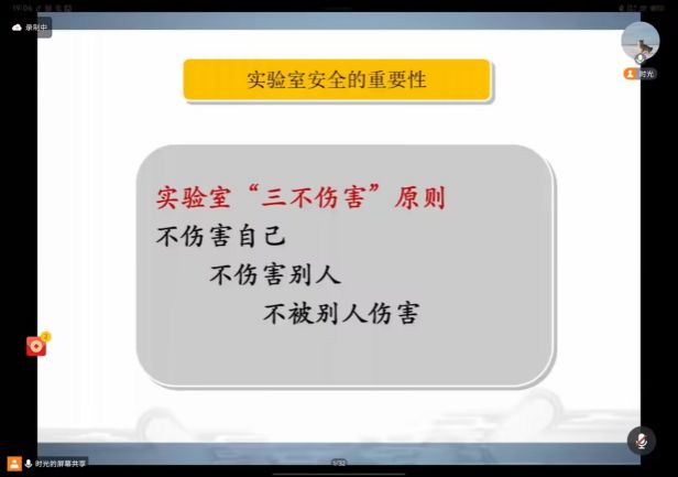 次日,李皓老师接力登场。从新冠疫情的阴霾到某高校集体患癌的悲剧,一个个真实的案例,无不诉说着生物实验室安全的千钧之重。李皓老师从法律法规的严肃条款到生物危害等级、危险物品类别的划分等作了详细解读,全方位地为新生构建起实验室安全的知识堡垒。他强调,良好的实验习惯是抵御危险的坚固铠甲,“改变人生,从养成好习惯开始”。这句良言如春风化雨,滋润着同学们的心田。