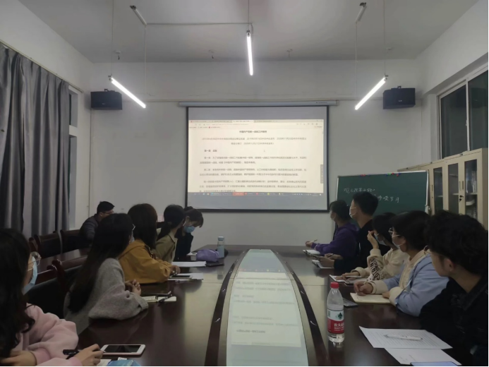 奏唱国歌,重温入党誓词后,肖天雄老师带领支部党员学习《关于新形势下党内政治生活的若干准则》和《中国共产党统一战线工作条例》。着重学习其中与党员不得信仰宗教相关的内容,支部成员围绕以上内容轮流发言,大家纷纷表示作为党员,在坚决不能信仰宗教的同时按照文件要求,处理好与宗教相关的问题。