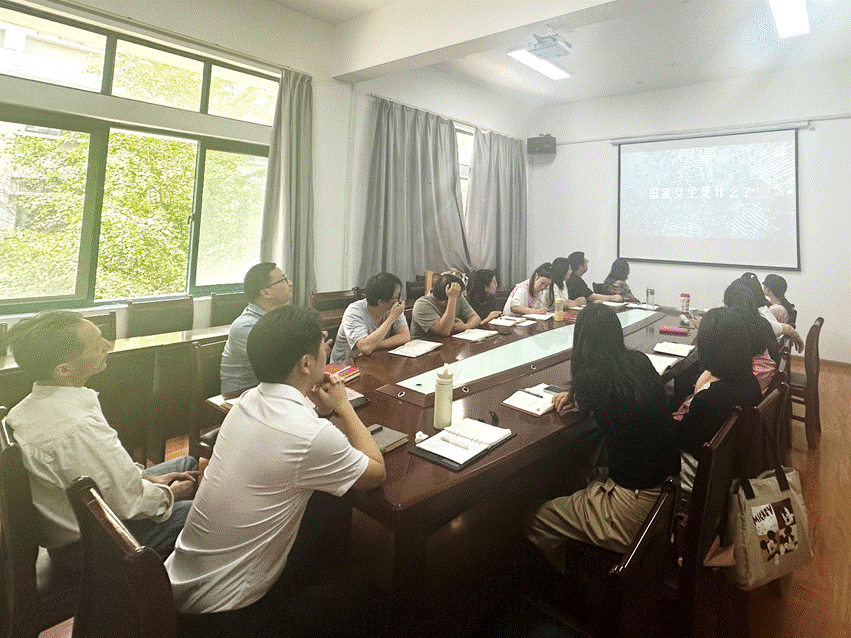 在全民国家安全教育日十周年之际,为深入贯彻落实总体国家安全观,提升教师党员维护国家安全的责任意识,4月30日中午,生化学院党总支以“树牢总体国家安全观,强化国家安全意识”为主题,结合当前中美关税战背景下的科技安全、生物安全等热点议题,组织全体教师党员开展专题党日活动,筑牢国家安全思想防线。