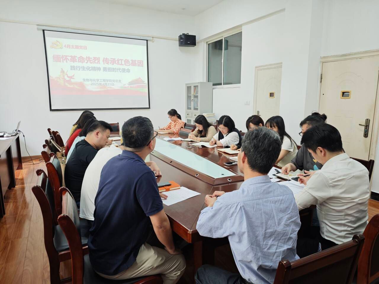 在中美关税战持续胶着、国际形势复杂多变的背景下,为赓续红色血脉、凝聚奋斗力量,生化学院党总支于2025年4月16日中午在知化楼206组织教师党员们开展了“缅怀革命先烈,传承红色基因”主题党日活动。