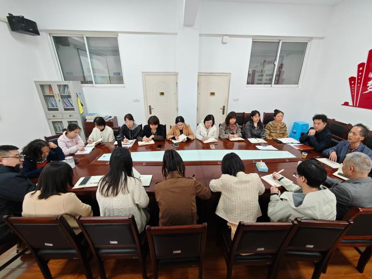 10月22日13时,我院在知化楼206会议室召开主题党日活动——"教育强国建设"第二次集中大课研讨交流会,围绕教育强国战略、教育面临的挑战及教学工作优化思路展开深入研讨。会议由学院党总支书记孙高飞主持,全体教师党员参加。